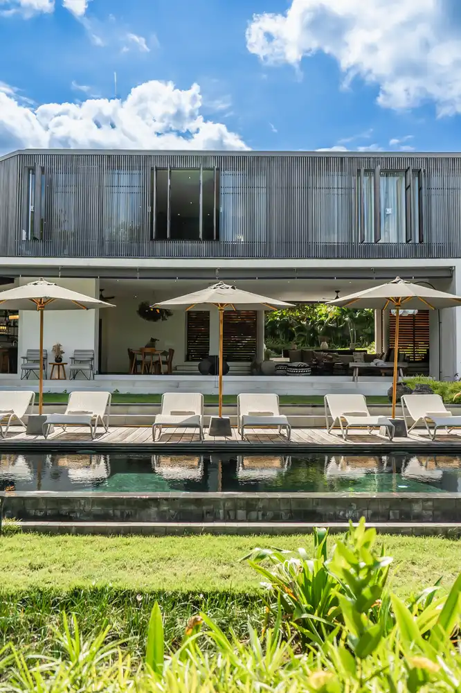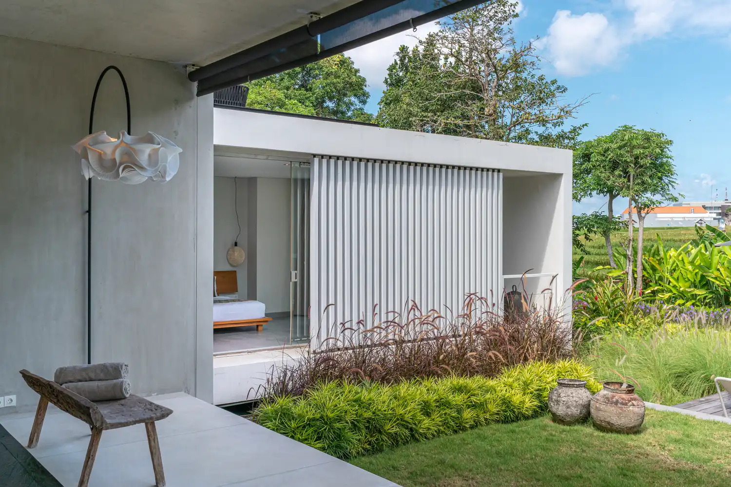 The villa is beautifully designed with a mix of modern French architecture and tropical elements to create a calming and cozy atmosphere. With a stunning view of the rice fields from the main swimming pool, you won’t want to leave this dreamy spot.