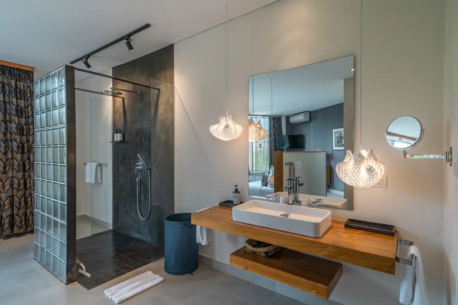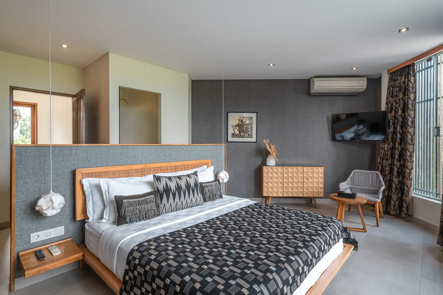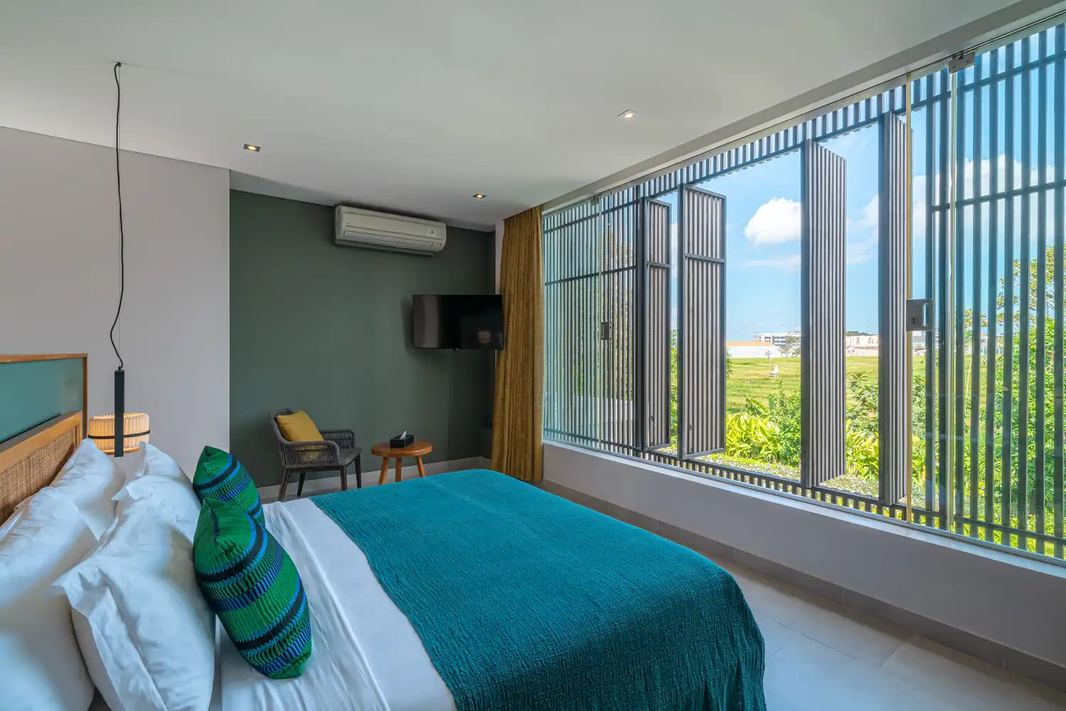 Each room has been thoughtfully designed to provide you with the ultimate rest and relaxation. But that’s not all – the views from these bedrooms are truly spectacular. Imagine waking up each morning to the sight of lush greenery from the garden, perfectly complemented by the stunning expanse of rice fields in the distance.